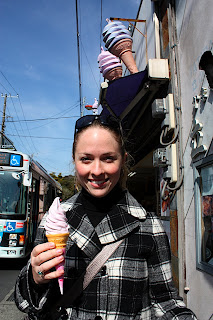 This past week, Brad and I had two days off of school. We decided to travel outside of Tokyo to escape the busy city. Since the break was short, we chose to travel somewhere that would require little travel time. The best place we found was Kamakura, Japan. An hour south of Tokyo, Kamakura feels like another time period. There are numerous shrines and temples to visit, beaches and of course, great food.