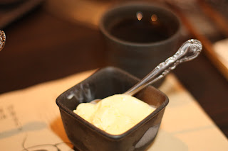 The waiter sets three different dipping options in front of each person at the table. One is soy sauce, to which you add freshly grated wasabi (another do-it-yourself experience), the second is a sesame sauce, and the third is a delicious salt flavored with what I think was sesame.