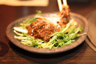 Our first courses included steak tar tar, kimchee, and beef tendon in a delicious sauce served over greens. This was only the beginning of the meat experience.