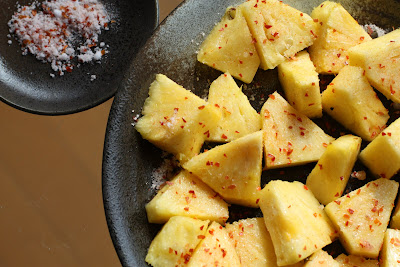 My favorite foods often include both sweet and salty flavors. I cannot resist recipes that transform these very different components into one delicious combination of flavors. That’s why the fresh pineapple we had in Thailand last week quickly rose to the top of my list of favorite snack foods. Lucky for me, pineapples are in season in Japan right now! While I might as well promise my first born child for the amount of money I have to spend on a nice, ripe pineapple, it was worth the splurge to fulfill my craving. There are cheaper pineapples here, but they would take a few days to become ripe and I just couldn’t wait! Darn you expensive grocery stores with perfectly ripe pineapples!