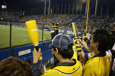 In the last of the perfectly clear, cool evenings before the rapid change into humid, sweltering heat, one has to find ways to spend as much time outside as possible. We have used our balcony, gone to the river, taken bike rides, and left our windows wide open to let in the sweet smell of spring. While these are all fantastic reasons for being outdoors (or letting the outdoors in) it is difficult to compete with attending a baseball game in an outdoor stadium. Yes, even in Japan, the act of flocking to a stadium to watch a good old fashioned baseball game with beer in hand is readily accessible and fantastically popular.