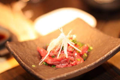 Our first courses included steak tar tar, kimchee, and beef tendon in a delicious sauce served over greens. This was only the beginning of the meat experience.