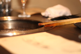 After ordering, the waiter bring a cube of fat to the table. Using bamboo tongs, the fat is rubbed on the grill to keep the meat from sticking. Now comes the exciting part…